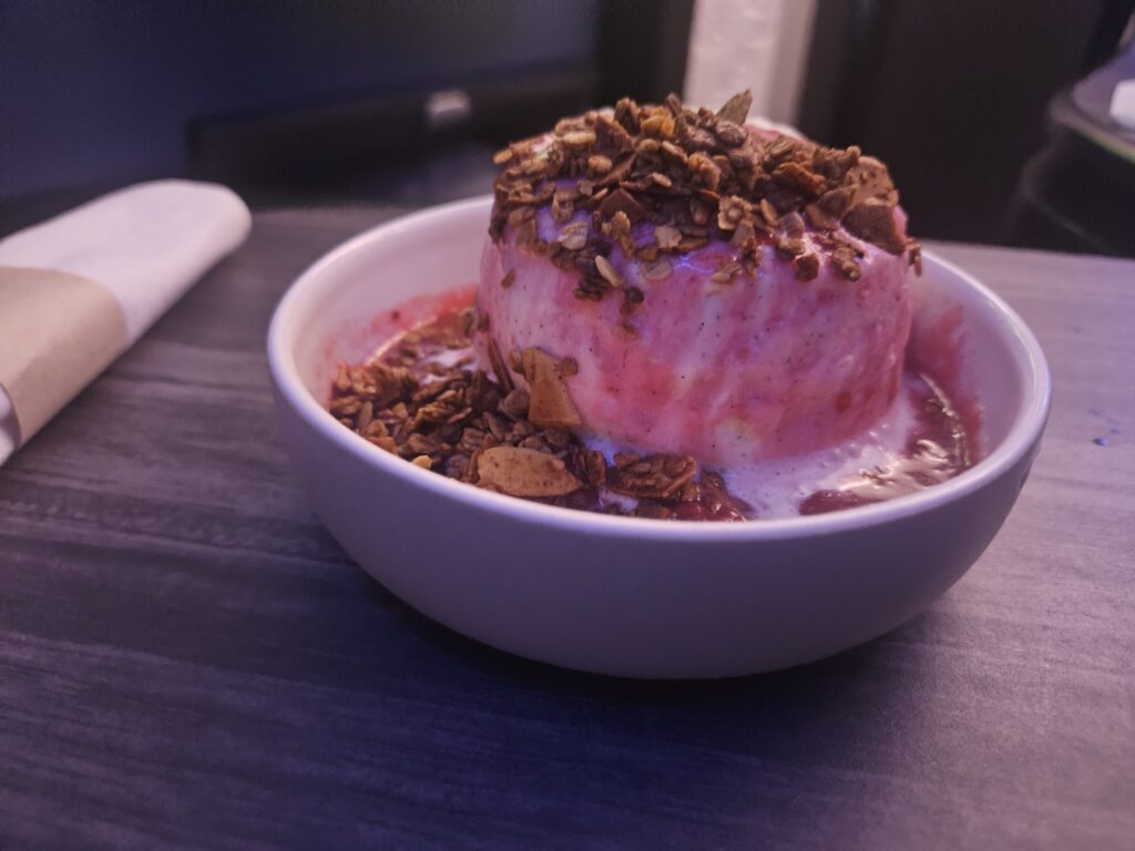 Dessert was frozen yogurt with raspberry and granola topping that was outstanding.